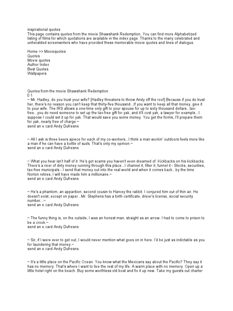 The shawshank redemption quotes that gives us hope to move forward in life. Hadley do you trust your wife. Easily move forward or backward to get to the perfect spot.
